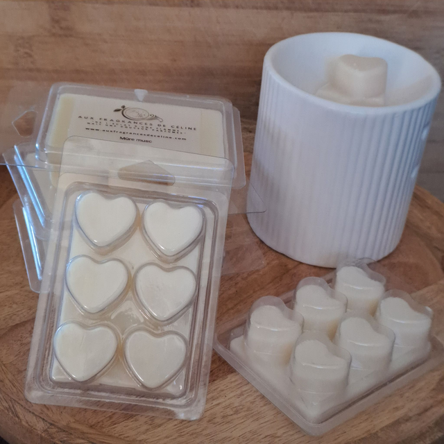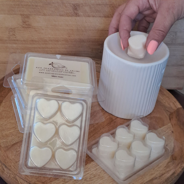 Chaque tablette est composée de 6 coeurs parfumés de 10 grammes chacun. Une fois fondus dans un brûle-parfum, ces fondants libèrent un parfum envoûtant et apaisant qui embaumera votre pièce pendant plusieurs heures.